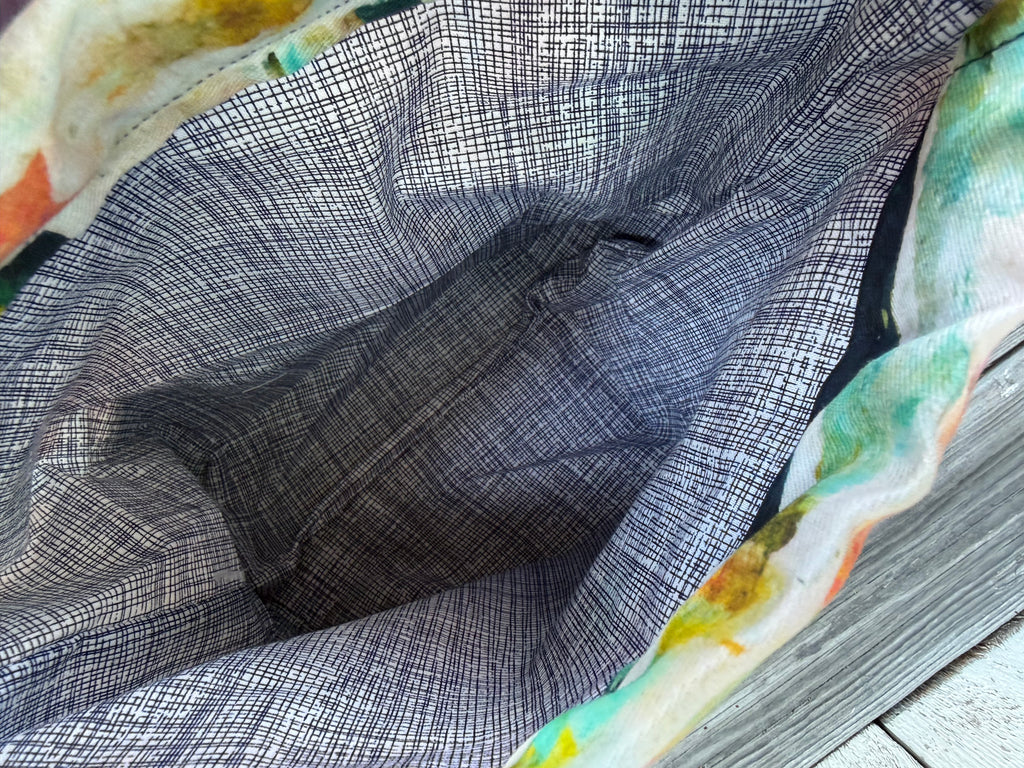 That sweet spot bag that sits like a bowl. Great for light shawls or even those smaller projects where you can throw your wallet in too. No pockets